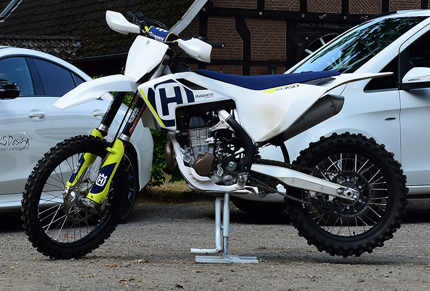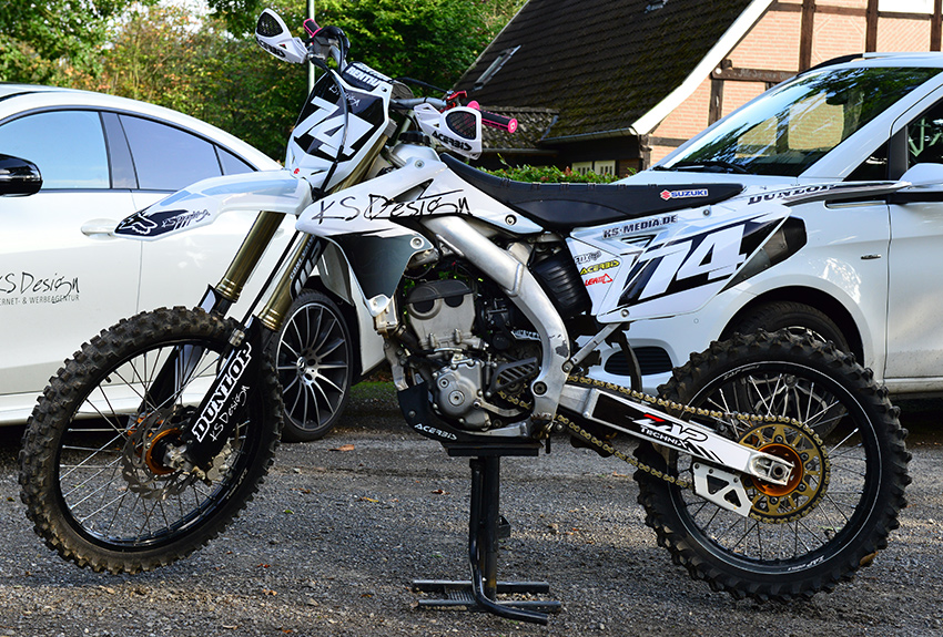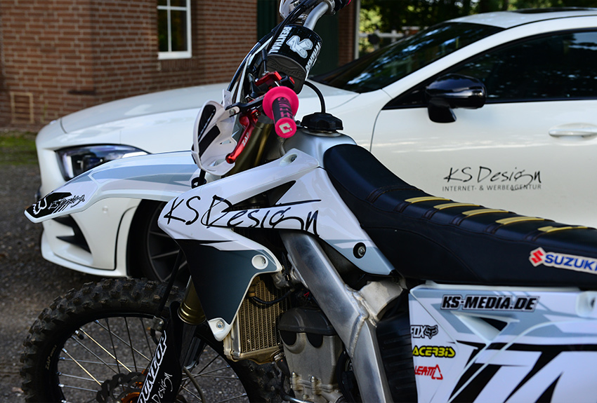 Mut, Flexibilität und ein hohes Maß an intuitivem Handeln zeichnet diese zu den anspruchsvollsten zählenden Sportarten aus. Das sind Eigenschaften, mit denen sich jeder Unternehmer gerne präsentiert! Wir gestalten für Sie MX Motorräder in exklusivem Design, abgestimmt auf Ihr jeweiliges Firmen CI oder auf Ihren Hauptsponsor. Für die Gestaltung benötigen wir von Ihnen lediglich die Vorgaben zu Ihrem Firmen CI (Logo) und die Eckdaten zu Ihrer Motocross oder Enduro Maschine (Hersteller, Modell, Baujahr).